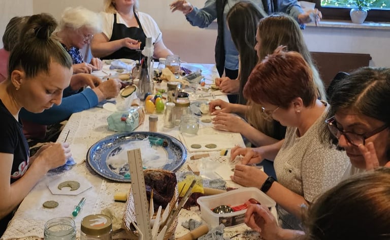 Der Kurs bot allen Teilnehmerinnen und Teilnehmern die Möglichkeit, ihre eigenen Ideen in beeindruckende Keramikobjekte zu verwandeln und dabei neue Techniken zu erlernen. Das Ergebnis ist vielfältige und liebevoll gestaltete Arbeiten, die die Vielfalt und Ausdruckskraft der Künstlerinnen eindrucksvoll widerspiegeln.
